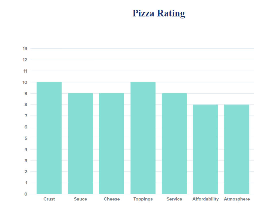 We rated crust an 8 because its decent crunch and not floppy. Sauce was an 8 because it was home-made and not drenched. Cheese was an 8 because it was stringy and stretchy. Toppings were an 8 because there was a lot of them and they were flavorful. Service a 9 because our server was really kind to us for the first time. Affordability an 8 because its not the cheapest if you don’t go on a Friday night, and it would be a bit more expensive to go as one or two people. Atmosphere an 8 because its really chill and is really family friendly.
