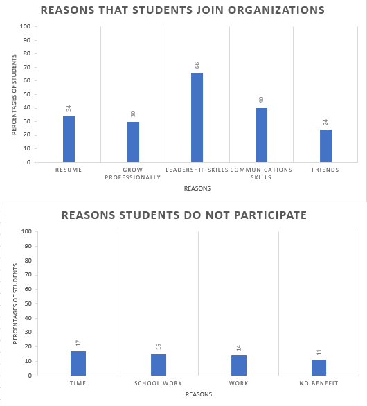 Josh: And I was going to say like for some reasons like why to join I know there’s a study done by Dr. Knight at the University of Arizona and he and a student did a research of why students join student organizations and why they don’t join, and one of the most popular ones was leadership skills, the next one was resume, like you said build your resume, another one, to grow professionally and work with your hands, get better, and then the last one was friends, people said they join because of friends, and reasons not to join was they said because of time, they didn’t have enough time because of either school work or work was kind of the two main reasons, did you guys have that, do you deal with that I mean?