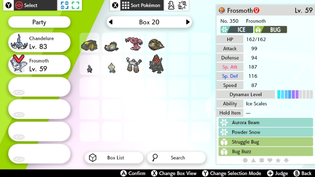 My Frosmoth is leveled up, trained with the correct effort values to maximize its best attributes, has a beneficial nature for its base stats, and has the moves I wanted it to learn so it can be a fierce opponent in battle. Now that Frosmoth is ready for battle, I can train up a few more Pokémon as well to make my team an unstoppable force.