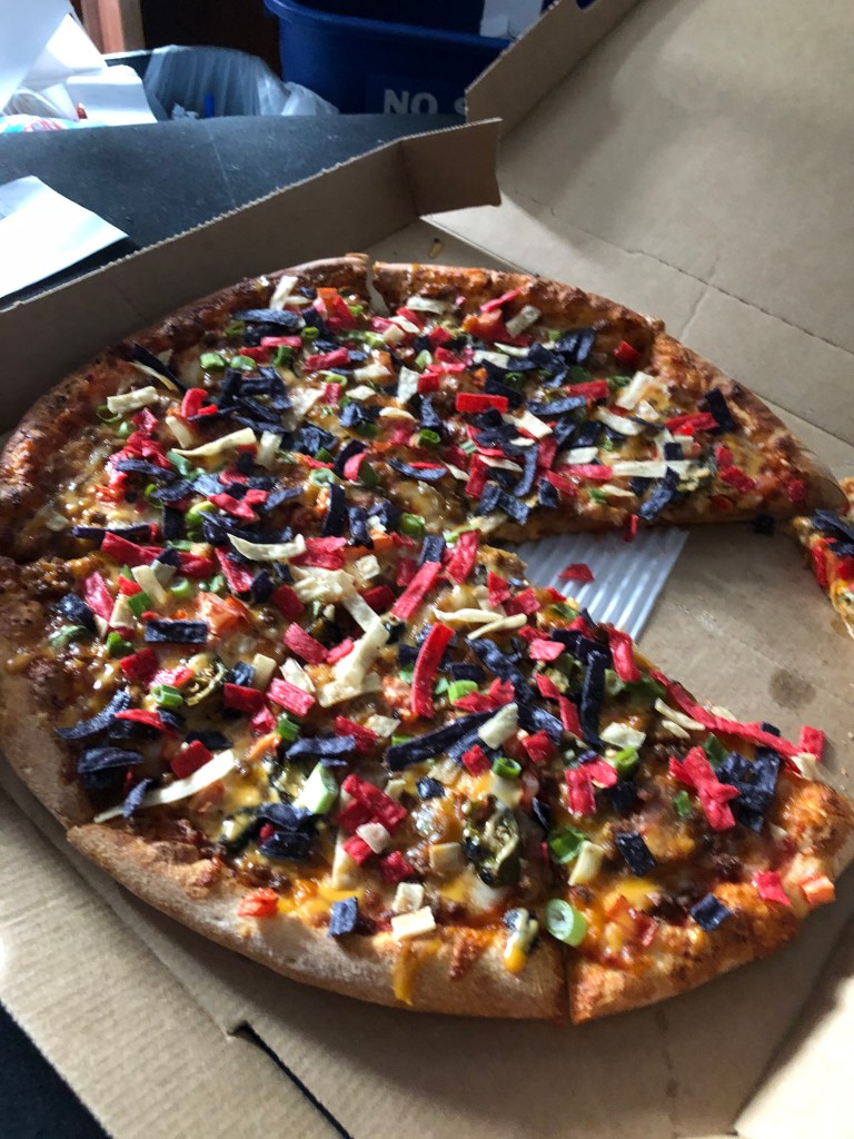 The price for that large hand tossed was $17.99 plus tip and delivery charge. Not so college friendly now, 4/10 affordability. Another downside was the 15-minute late delivery. I’m hoping this was a fluke or something because I really want to order it again and not skip class waiting, 5/10 service. Otherwise the crust had no flop and you could taste every ingredient. It really felt like a master piece with the crunchy and soft toppings. Cheese and toppings where a 9/10 and the crust was 8. The nacho sauce was a 8 because the I almost didn’t notice it in some spots. The atmosphere was an 8 because its not completely made for dine in.